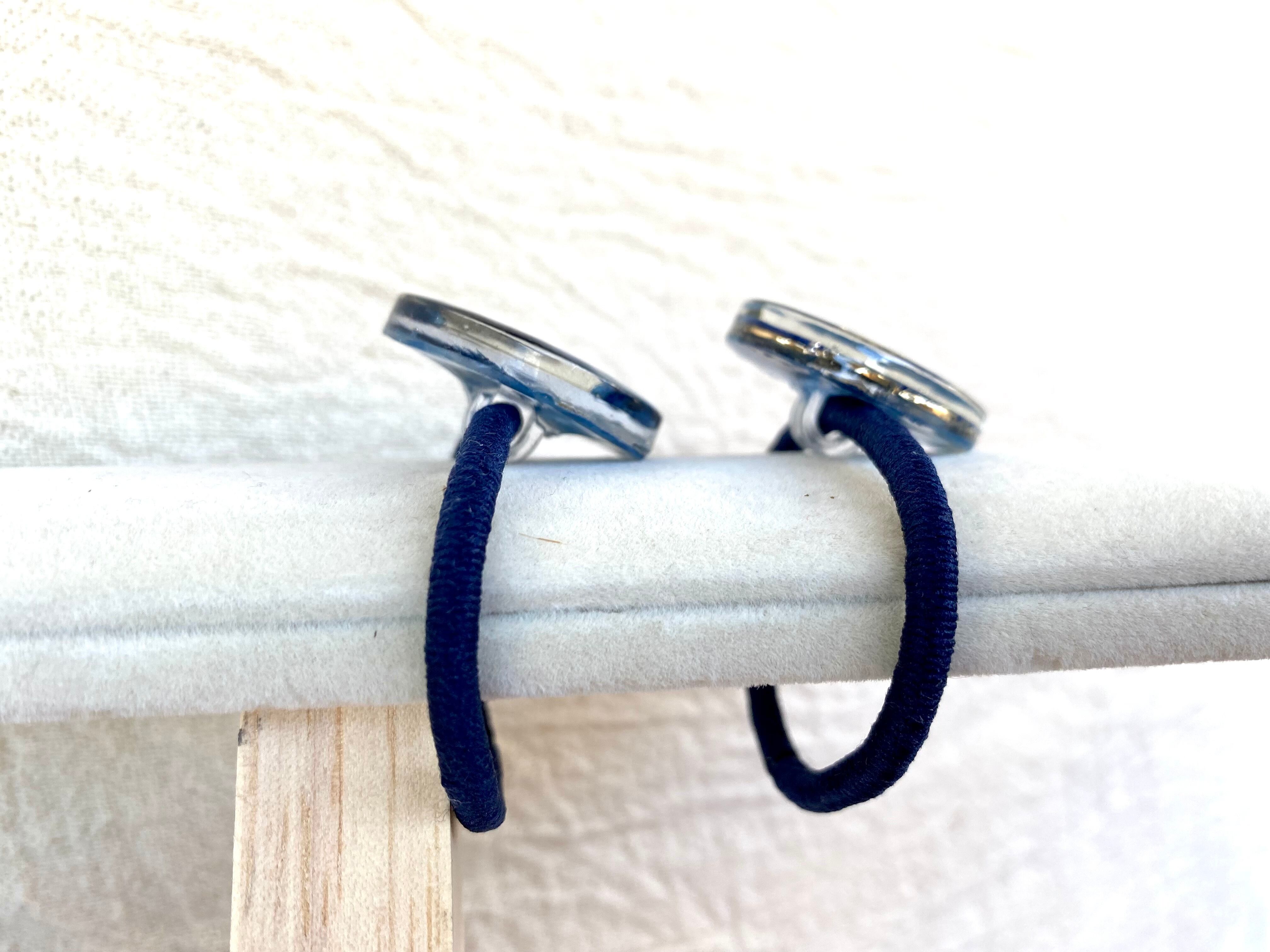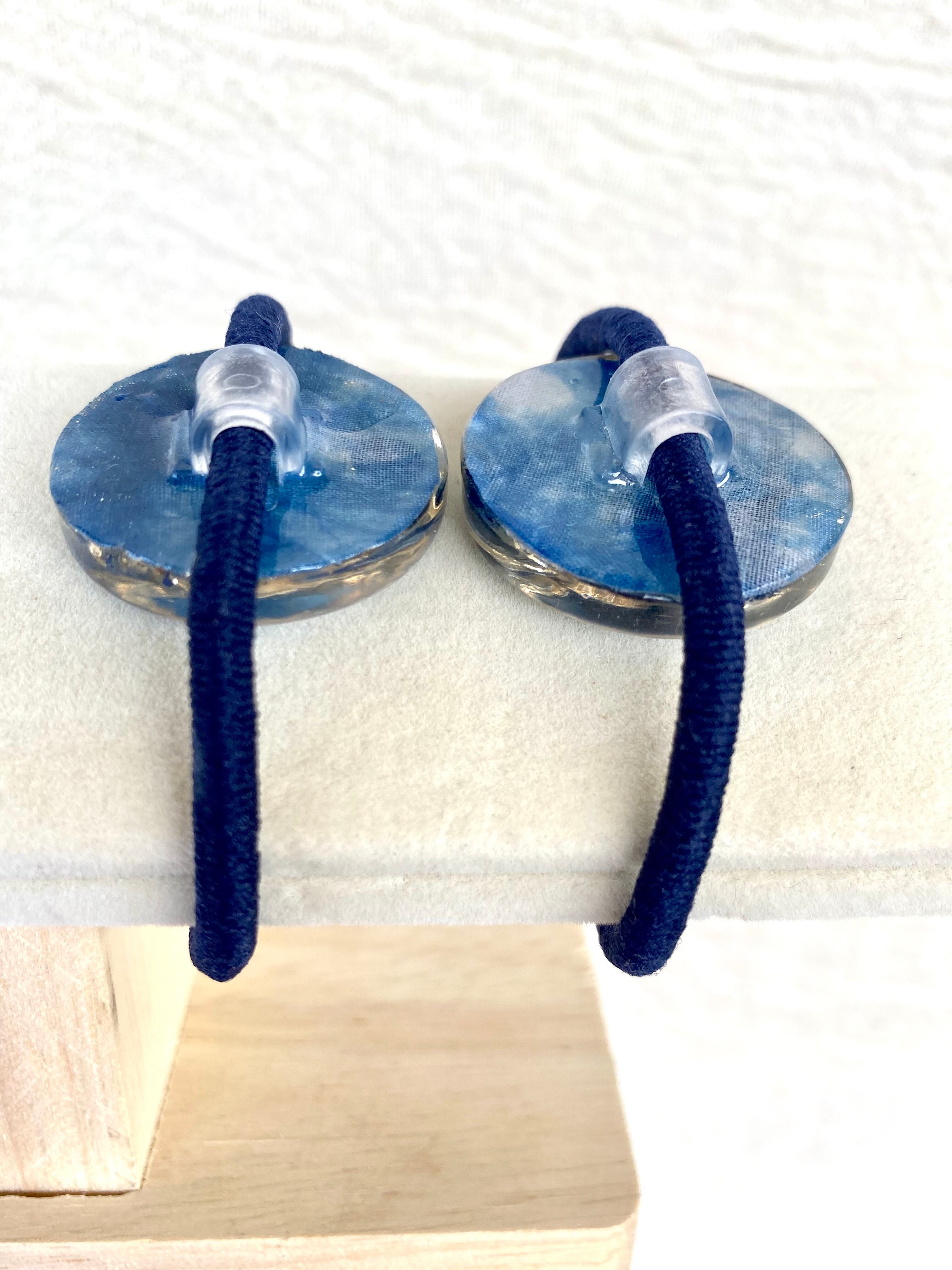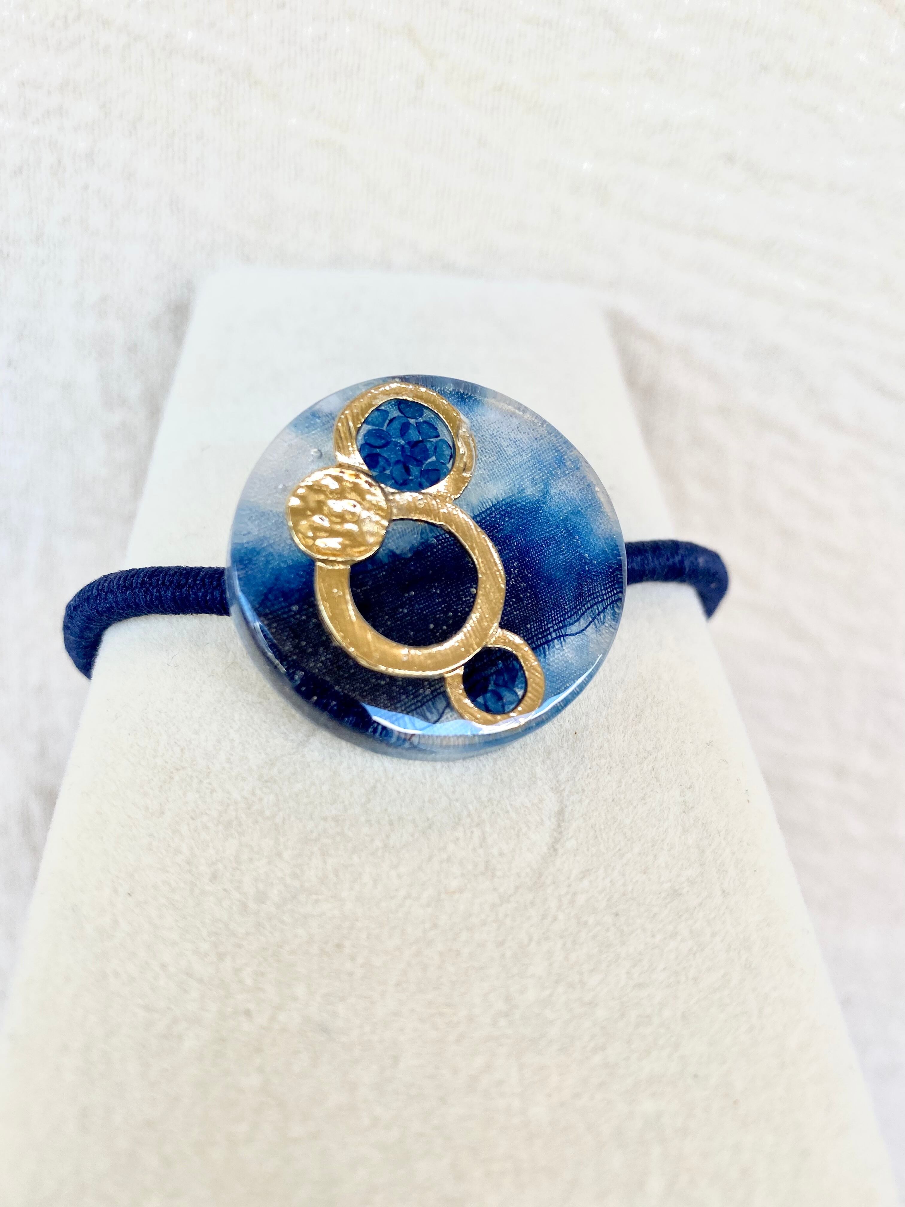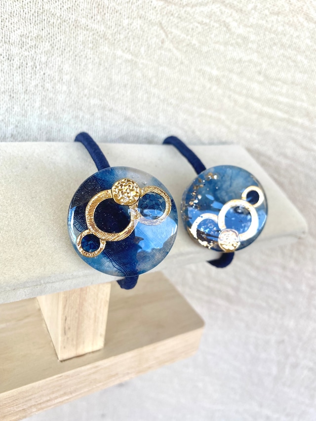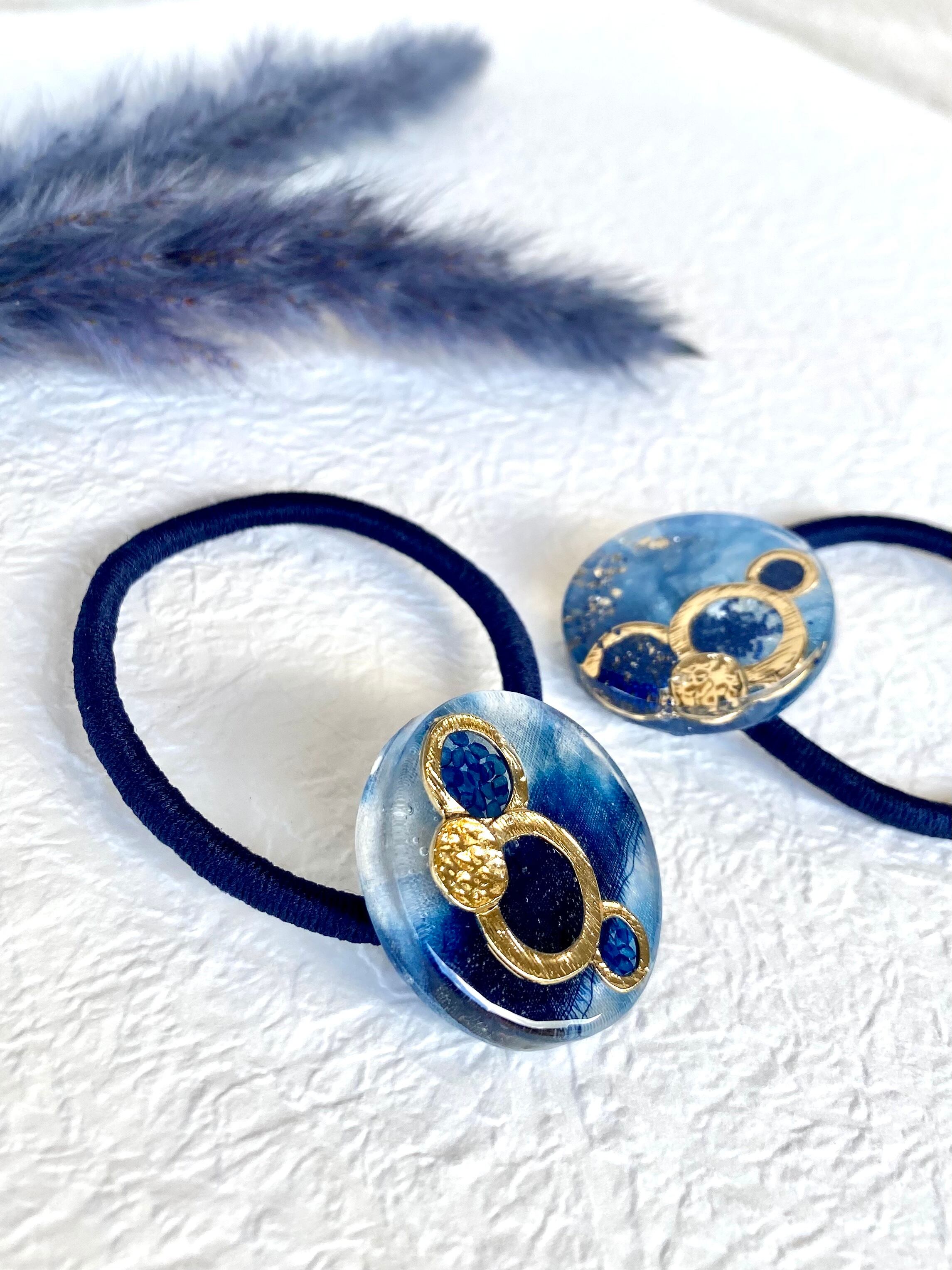 本藍染め布をレジンに閉じ込めたヘアゴム ゴールド 藍色 夏コーデ